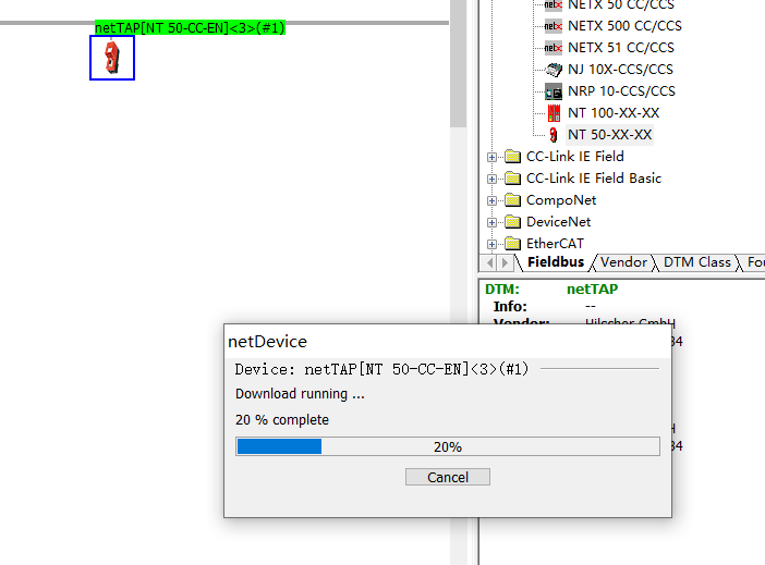 网关模块用(NT50-CC-EN)举例说明1.给模块供电(24V),并用网线把电脑和模块连接起来,如下图3.打开模块配置软件,添加模块组态,选中模块拖拽到netDevice窗口横线上,右击模块,选择C......