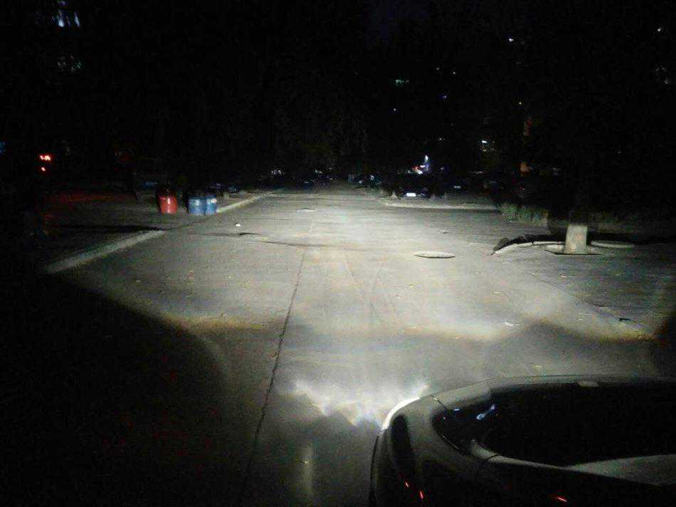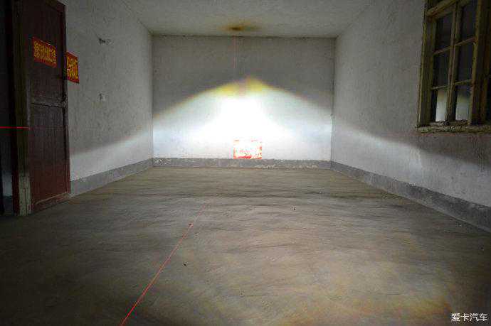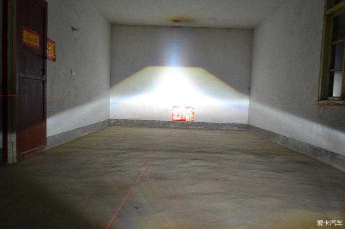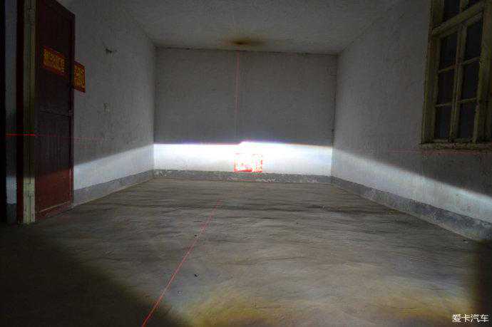 测试配置1:G1S透镜+欧司朗45W安定+欧司朗CBI5500K氙灯远近光效果和亮度8米距离测试