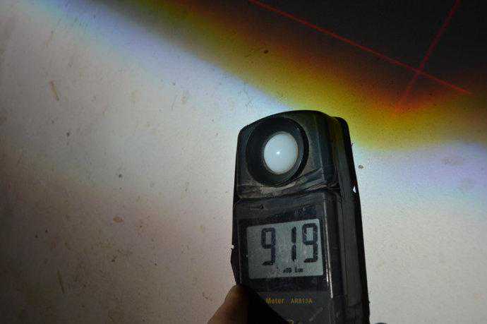 下面开始G1S透镜和海拉5海拉6透镜的对比测试,也是最初版本的G1S透镜,普通玻璃的,变光片没有消余光的。现在的最新版比这个更亮,切线更好看。测试选用的安定灯泡都是随机选择,不代表该品牌最亮的情况,随机才客观。因为同一品牌氙灯亮度个体差异有时候可以达到正负20-30%的极端情况,所以我一般是随机选择,在同一个场地,同样距离,用同一个安定和灯泡来测试不同透镜,这个更客观。本次测试仪表显示结果,量程都要乘以10才是准确数据。
