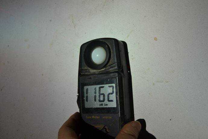 测试配置1:海拉5透镜+欧司朗45W安定+欧司朗CBI5500K氙灯测试距离8米远近光亮度都不如高清镀膜G1S,同一套光源,同一个场地,同一个距离,近光亮度只有G1S的一半多,远光亮度也少了20%以上