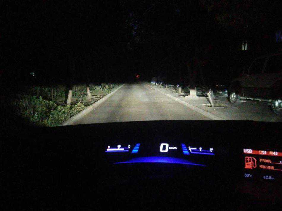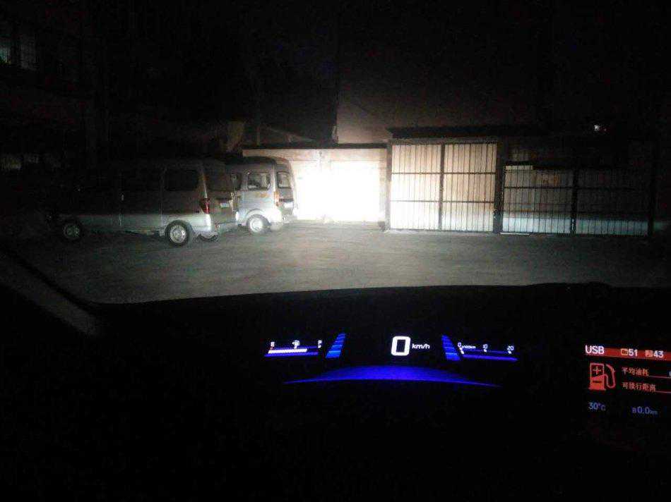 测试配置:G1S透镜+欧司朗45W安定+欧司朗CBI5500K氙灯。3米距离远近光亮度和效果