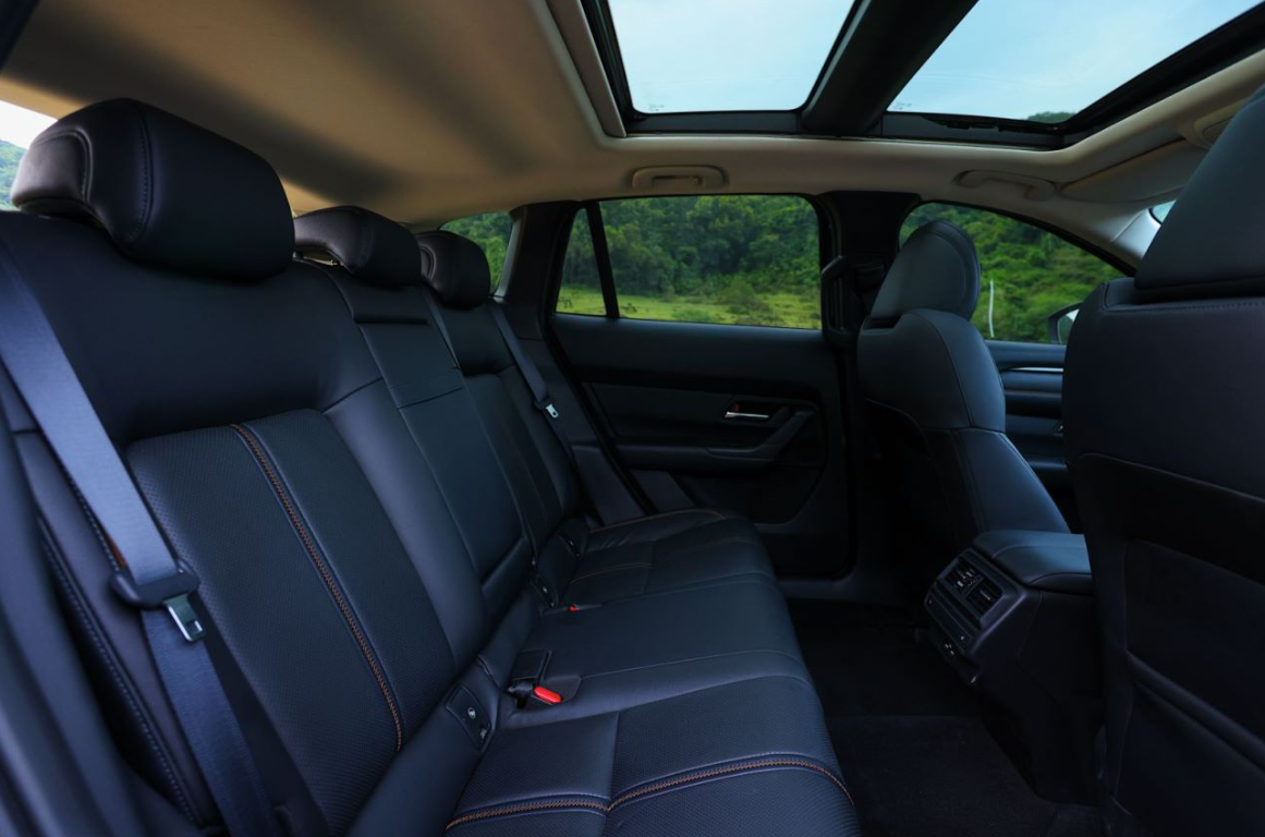 进入到车内,特别是打开后排车门的时候,真的让我怀疑了一下,这真是马自达吗?因为马自达一直被吐槽空间小,实用性不强,而马自达CX-50行也的后排空间是肉眼可见的宽敞。这点从数据上也得到了印证,它的车身尺寸为4785*1920*1638mm,轴距为2815mm,相比自家的CX-5车型有着更长的车长和轴距。实际乘坐体验来说,身高176cm,后排的腿部空间超过了两拳,头部空间也有两拳左右。