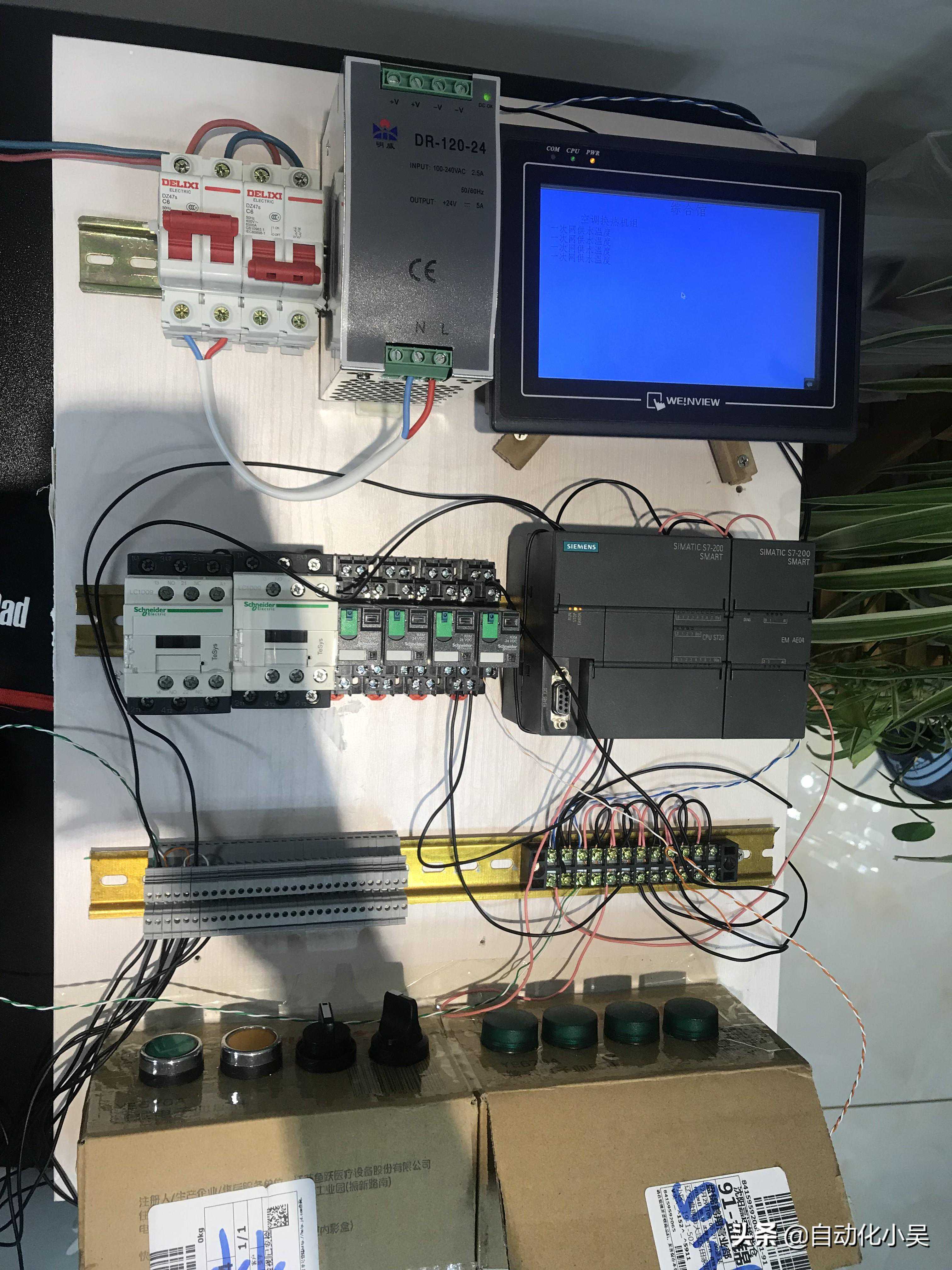 大家好,我是自动化小吴,为了能够更好的学习PLC工控技术,我将家里现有的设备进行组装,利用家里装修剩下的板子,作为安装板,在某宝上淘了一个200smartST20PLC,最近,已经将设备组装起来了,现在手头有点紧,要不就再买一套私服控制器,开始学习私服控制。