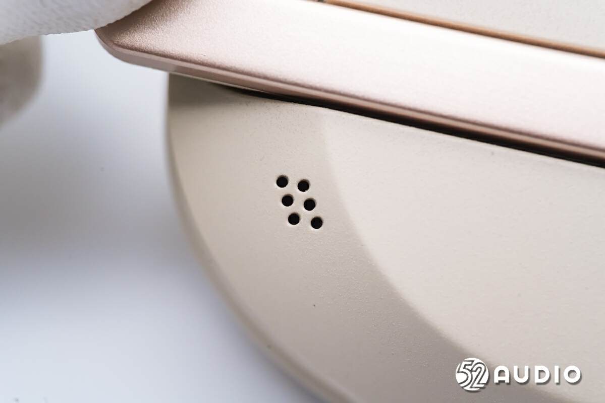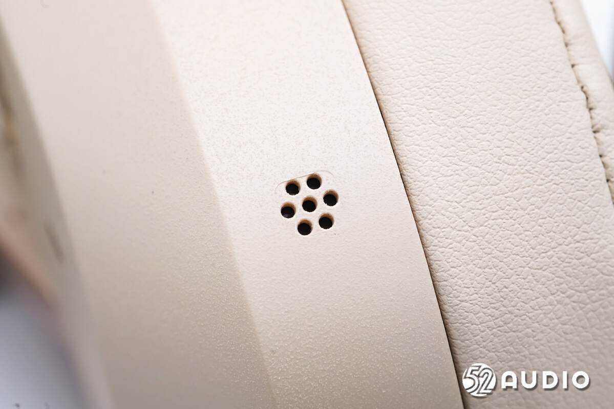 耳壳侧边设计有点阵的麦克风拾音孔。