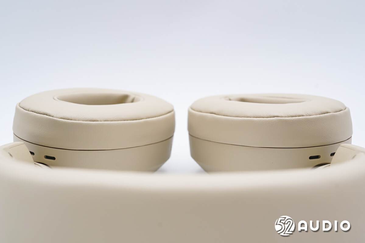 耳机外侧外观一览,耳机采用了磨砂质感,悬挂结构设计独特,功能完善;耳壳采用了磨砂质感,由上代的圆形改为了更加符合人耳结构的椭圆形,能够更好地适配不同头型。