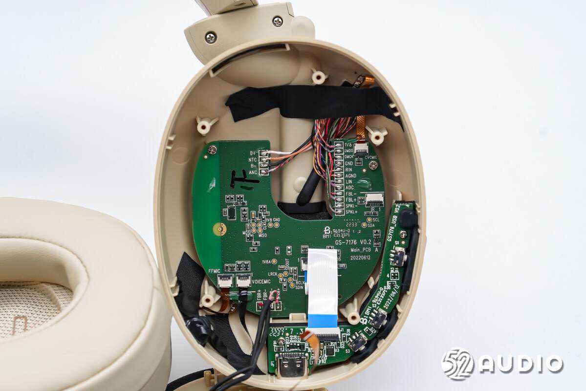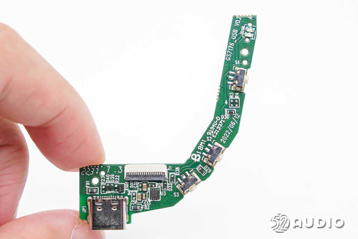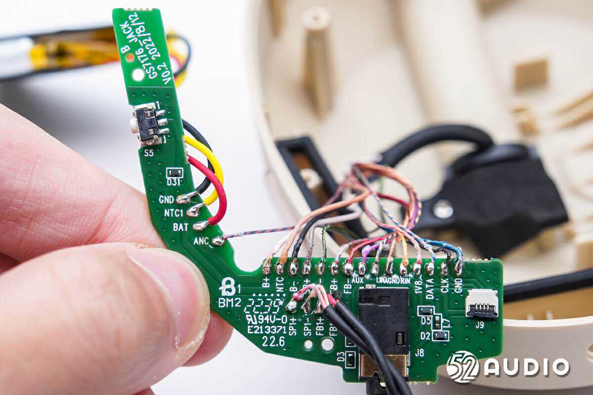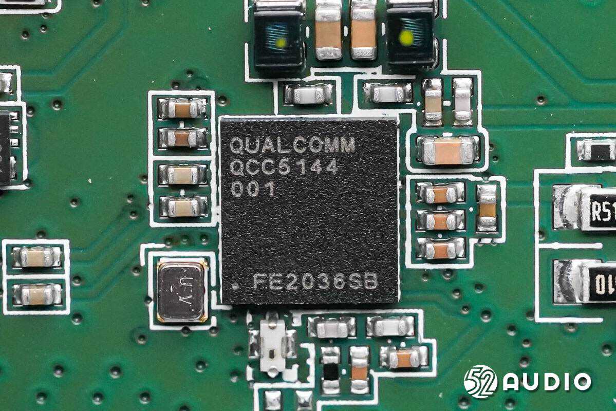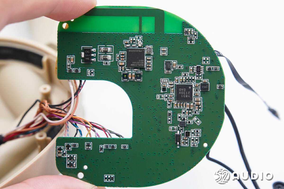 主板上,采用了Qualcomm高通QCC5144蓝牙音频SoC,结合了高性能音频与低功耗特性;支持蓝牙5.2,支持高通SnapdragonSound骁龙畅听技术;YAMAHA雅马哈YMU831数字降噪IC,内置DSP数字信号处理技术,用于通话、降噪和音乐处理;还采用了永阜康CS5801T过压过流保护IC等。