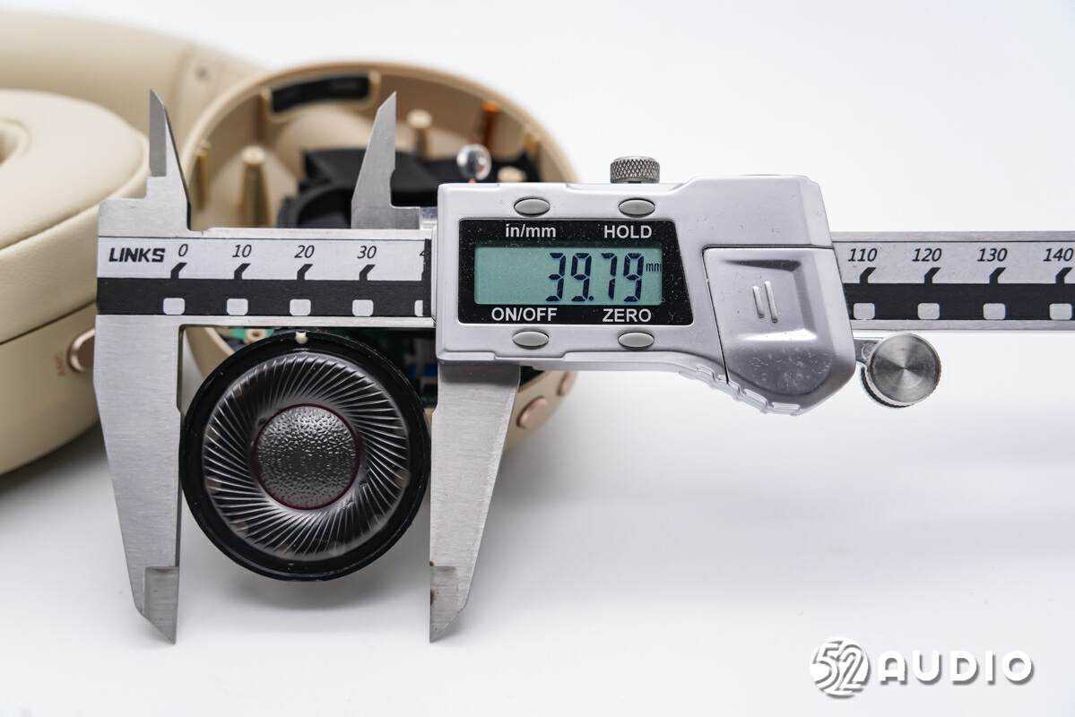 经我爱音频网实测,扬声器尺寸约为40mm。