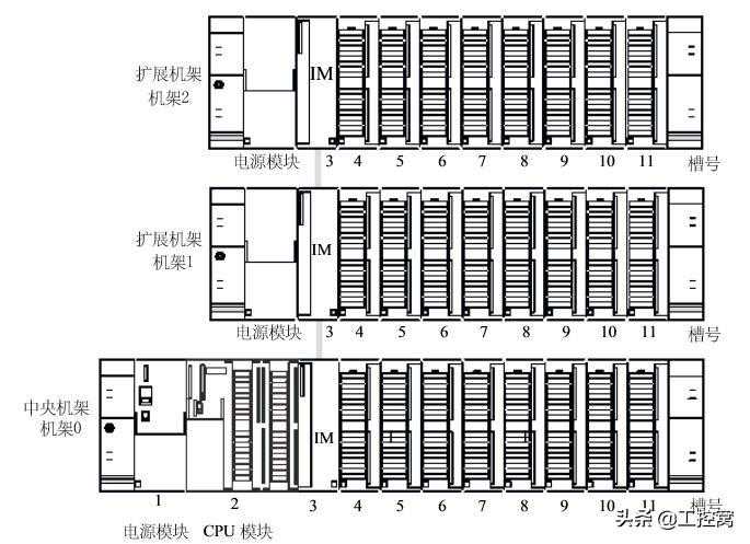 PLC只需要扩展一个机架,可以使用价格便宜的IM365接口模块对。
