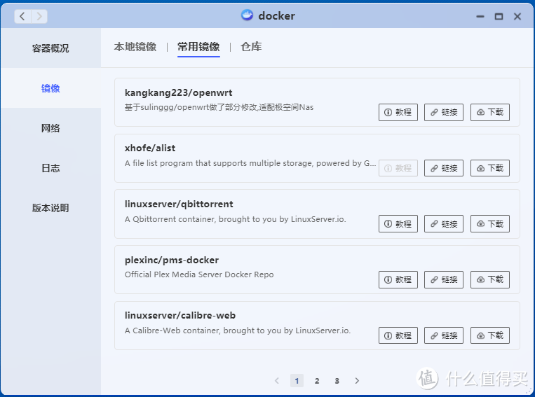 在常用镜像中,收纳了OpenWrt、Plex、Emby、Jellyfin、Qbittorrent等NAS爱好者耳熟能详的常用软件。