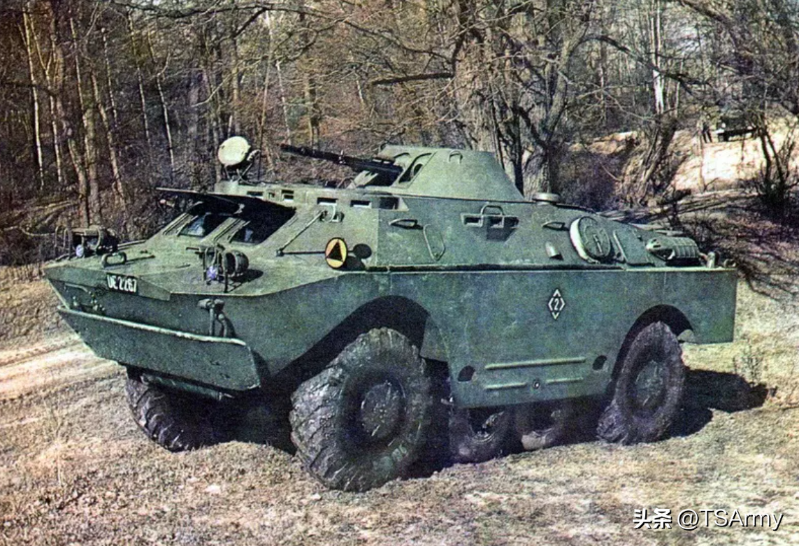 BRDM-2是由前苏联在上世纪60年代初期,所设计的一种4×4装甲侦察车,主要特点就是越野能力强,在经过恶劣道路或越壕沟时,中间两侧会伸缩出4个小轮子辅助前进。