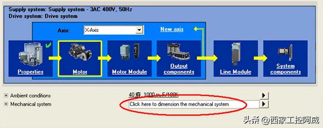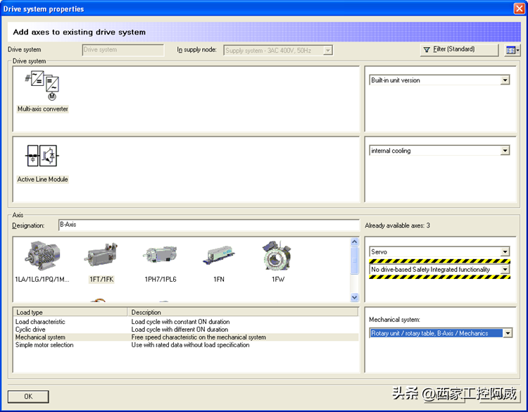 Step2:在“驱动系统”中创建一个新的驱动系统,驱动类型:多轴/ALM,电机:1FT/1FK,负载类型:机械系统