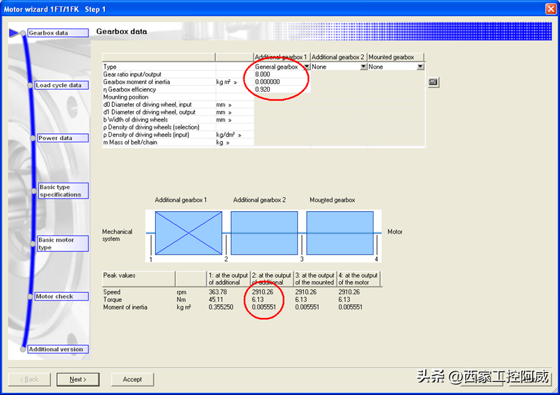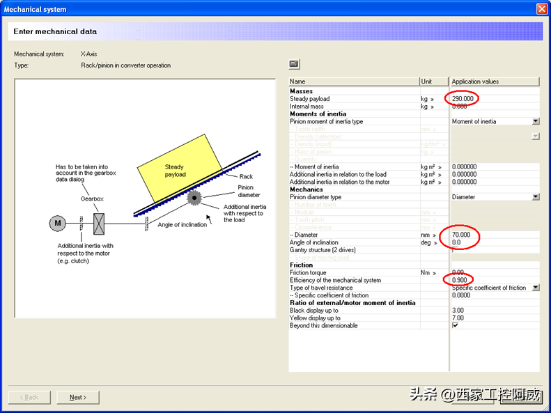 Step3:对必要的机械系统数据进行配置:如质量、齿轮比、摩擦力、机械转换效率等