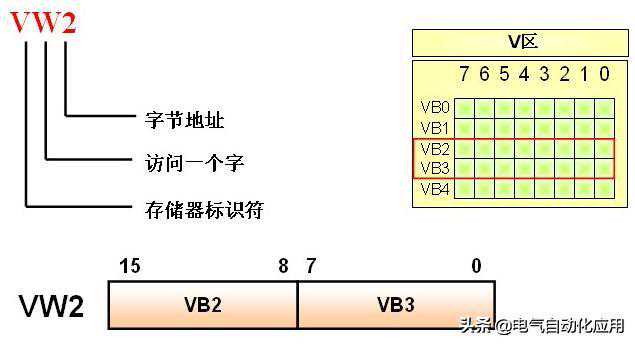 相邻的两个字节组成一个字,字为16位,如VW2是由VB2和VB3组成。