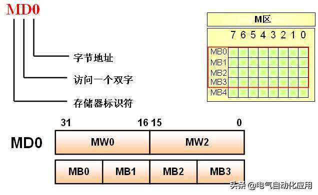 相邻的两个字组成一个双字,双字为32位,如MD0是由MW0和MW2组成