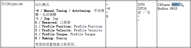 对象字典描述了对象设备的所有功能。例如伺服驱动器的索引6060:0定位到了设备的运行模式,后面跟的数据确定了运行模式。如图12-1-2所示。