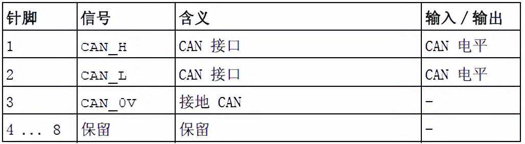 图12-1-7RJ45CANopen管脚定义