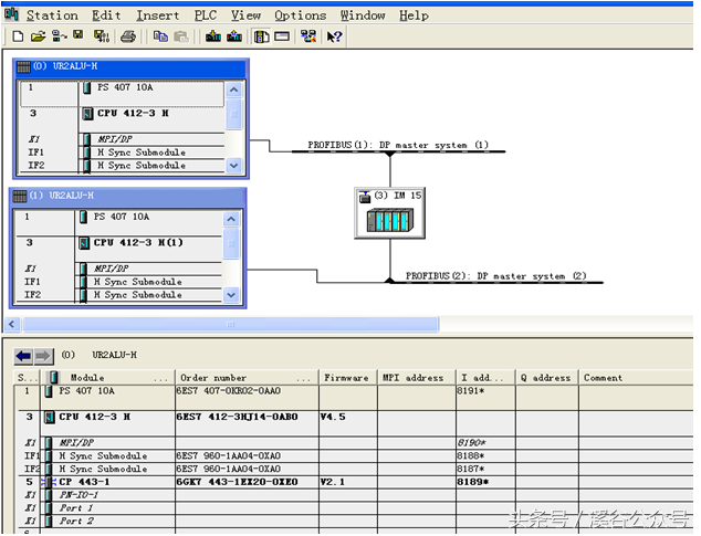 利用以上步骤就完成了硬件的组态,或者也可以先组态好Rack0及所需插入的所有模块,然后将其拷贝,生成Rack1及其所需插入的所有模块,在此操作中请注意修改新生成的Profibus网络参数以及Ethernet网络参数,设置方法请参考前文叙述。