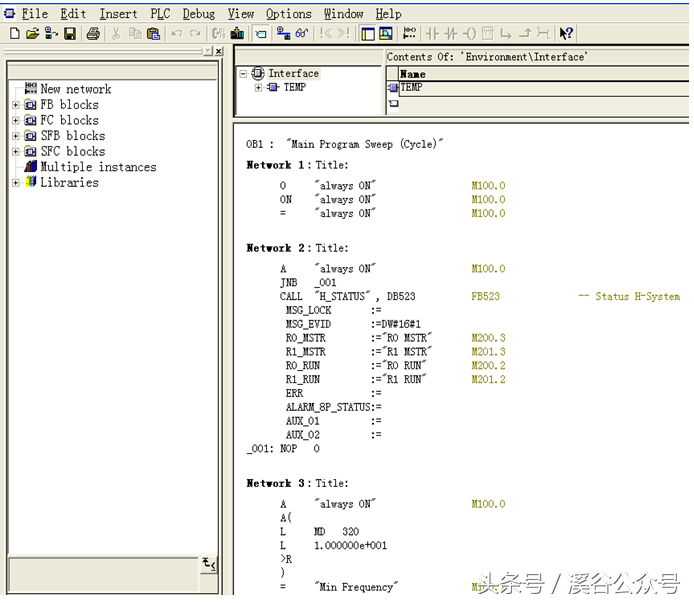 2.3新建示例项目组态结束,打开OB1块LAD/STL/FBD编程界面进行控制程序编辑(如图21)