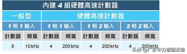 支持4组200kHz硬件高速计数器