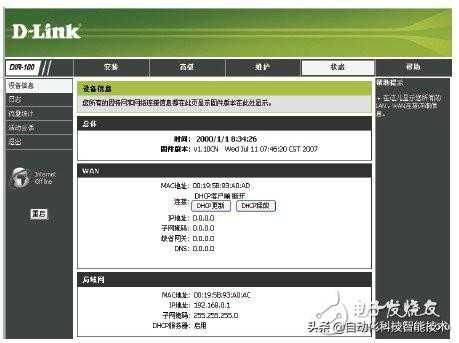 (7)上述步骤完成后,通过PC1登录一下互联网,如果成功,则表明网络调试成功,此时再次进入D-LINK路由器操作,进入“状态”选项,如果连接成功,在WAN一栏中会显示DHCP客户端连接,且“IP地址”、“子网掩码”等均会有所显示,请记下此IP地址,该IP为电信运营部门分配给ADSL的IP地址。比如为218.82.145.059。如图5所示。