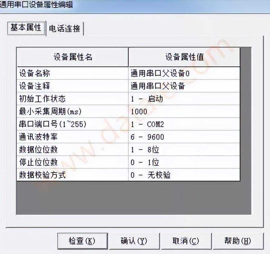 出现参数设置对话框,选择通讯端口,设置波特率、数据位、停止位和校验方式。最后确定。