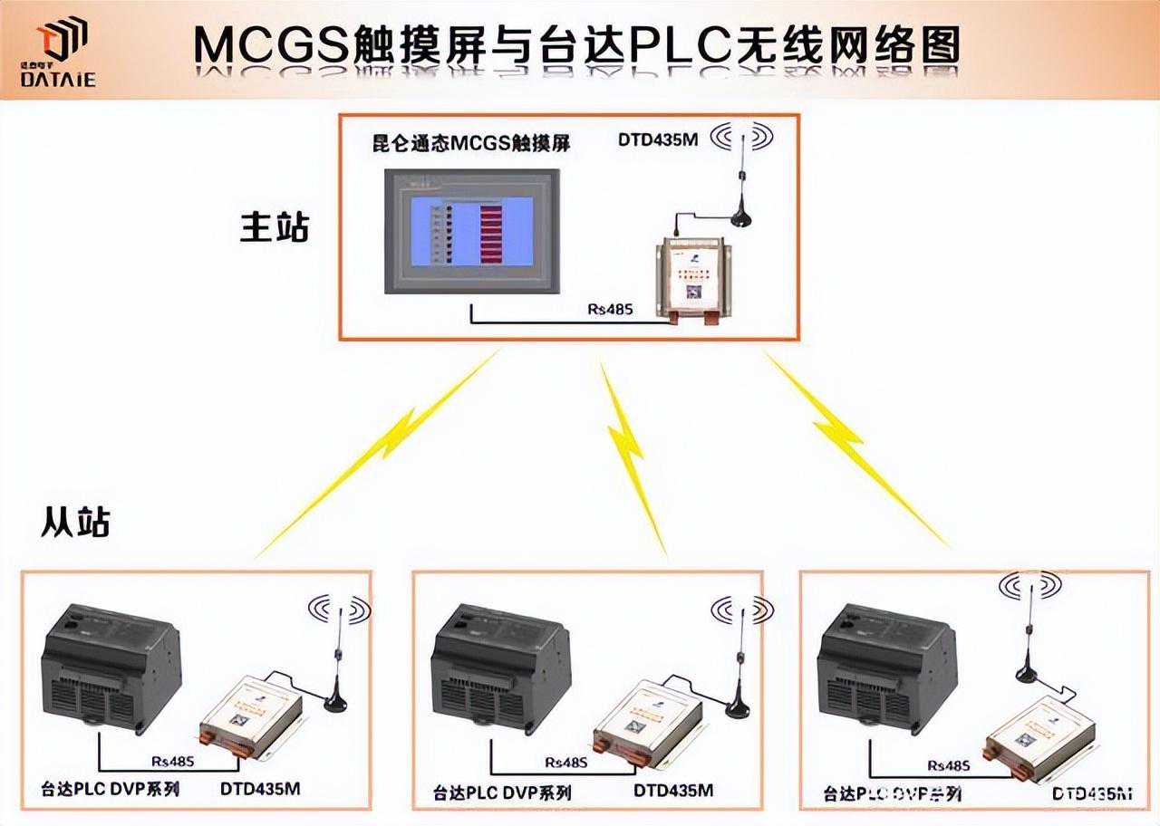 今天,我们来一起学下下台达PLC与触摸屏之间无线通信的实现方法。其中触摸屏作为主站,台达PLC作为从站,并采用日系PLC专用无线通讯终端DTD435MC,作为实现无线通讯的硬件设备。