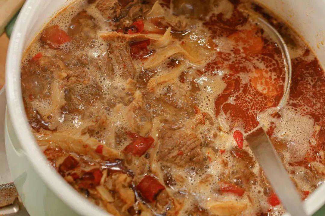 公安牛肉是湖北荆州的特色,它不是一种肉,而是指牛肉火锅,一大锅里,有牛杂、牛肉片、牛蹄筋,看着他们在锅里咕嘟咕嘟,食欲瞬间被激起。