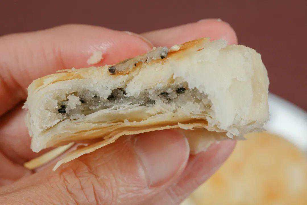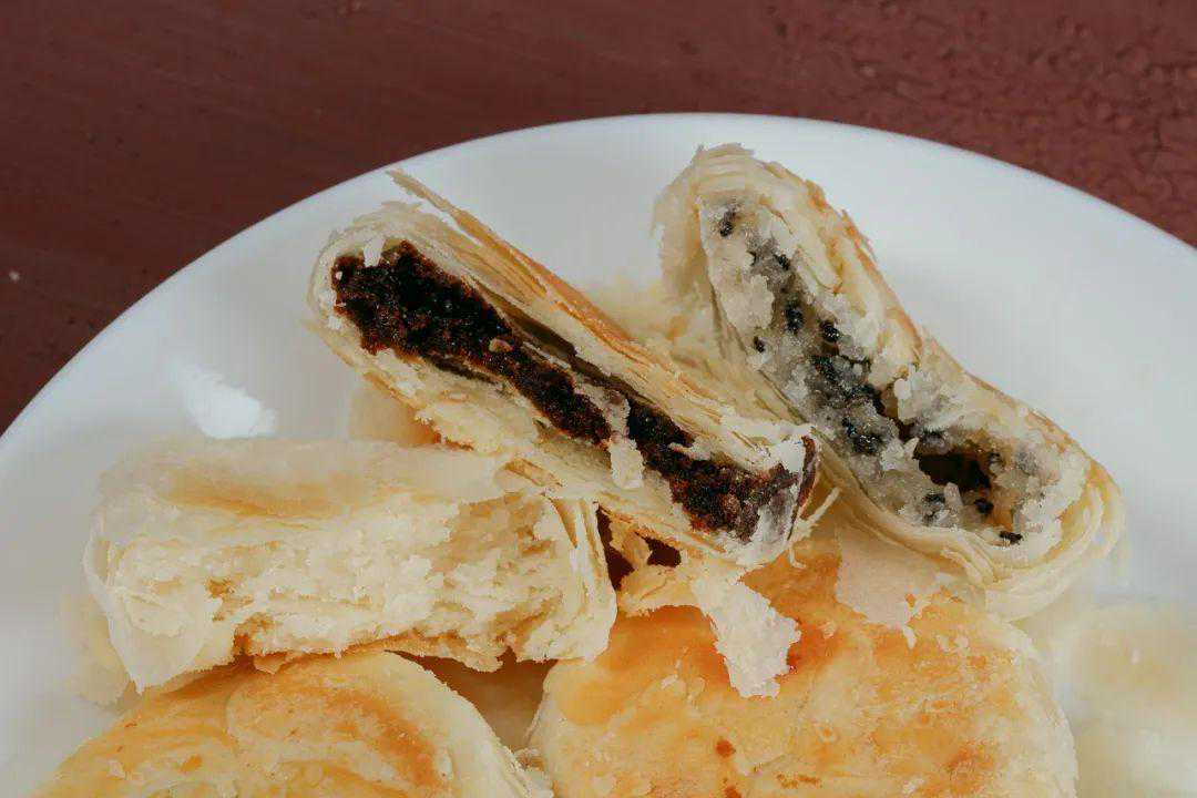 黑芝麻、板栗、桂花、玫瑰、椒盐,矮子馅饼的口味特别丰富,我们这次没有指定口味,像抽盲盒一样品尝每块馅饼,没有一种口味踩雷。最最好吃的还是经典的豆沙味,豆沙细腻绵软,甜而不腻,搭配香酥的外皮,忍不住竖起大拇指。