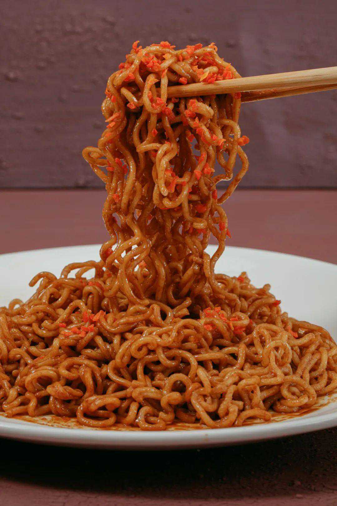 面饼看起来和方便面差不多,懒人可以直接选择热水冲泡,讲究点儿就开水煮个三分钟。淋上麻酱、醋、辣椒油,最后撒上胡萝卜碎,一碗简易版的热干面,飘着麻酱的油香。