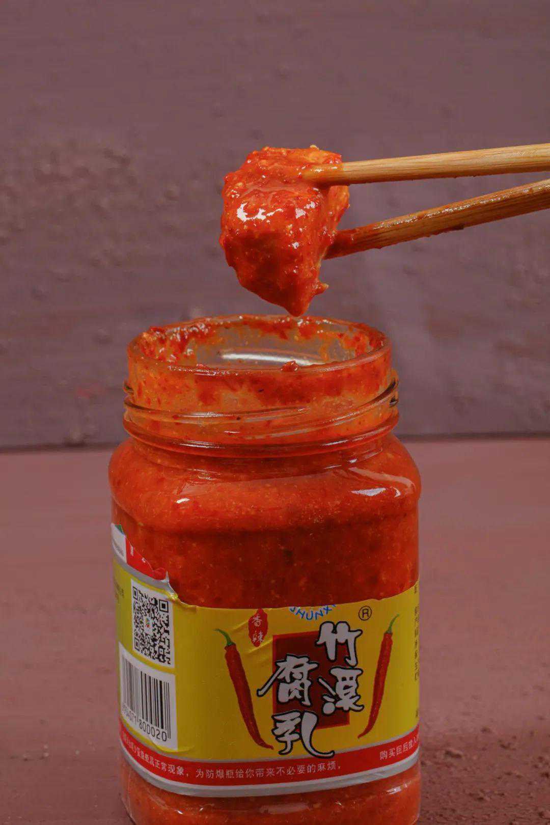 如果可以接受吃带臭味的腐乳,可以来试试竹溪腐乳。瓶盖一打开,就能闻到略带些臭味的香气,熏得人有些上头。