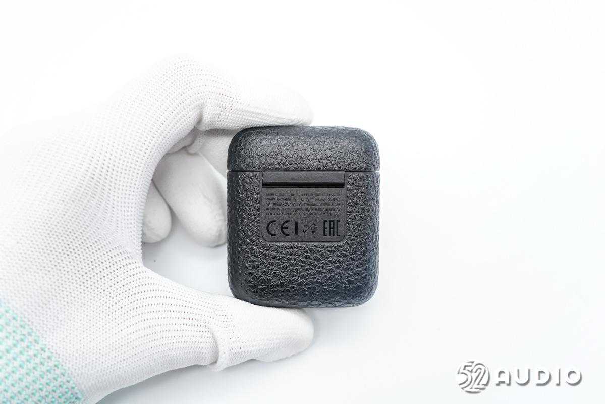 充电盒背面外观一览,设计有产品的部分参数信息,输入:5V⎓500mA,输出:5V⎓60mA*2,充电盒电池容量:410mAh/1.558Wh。