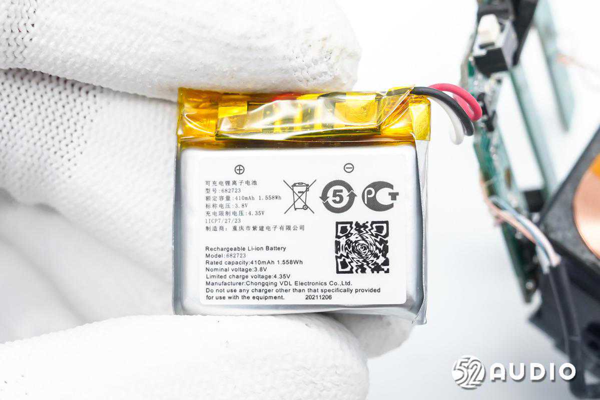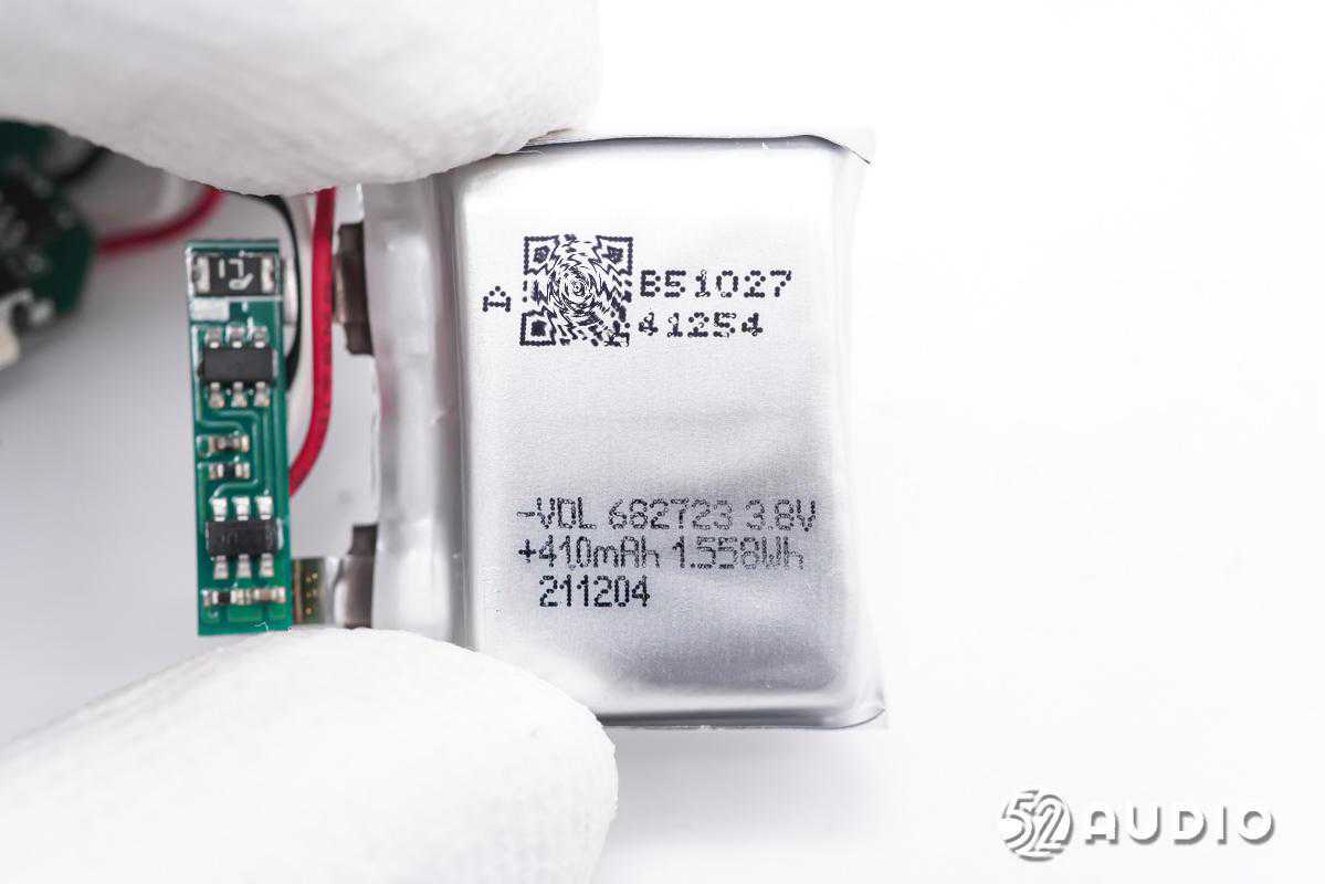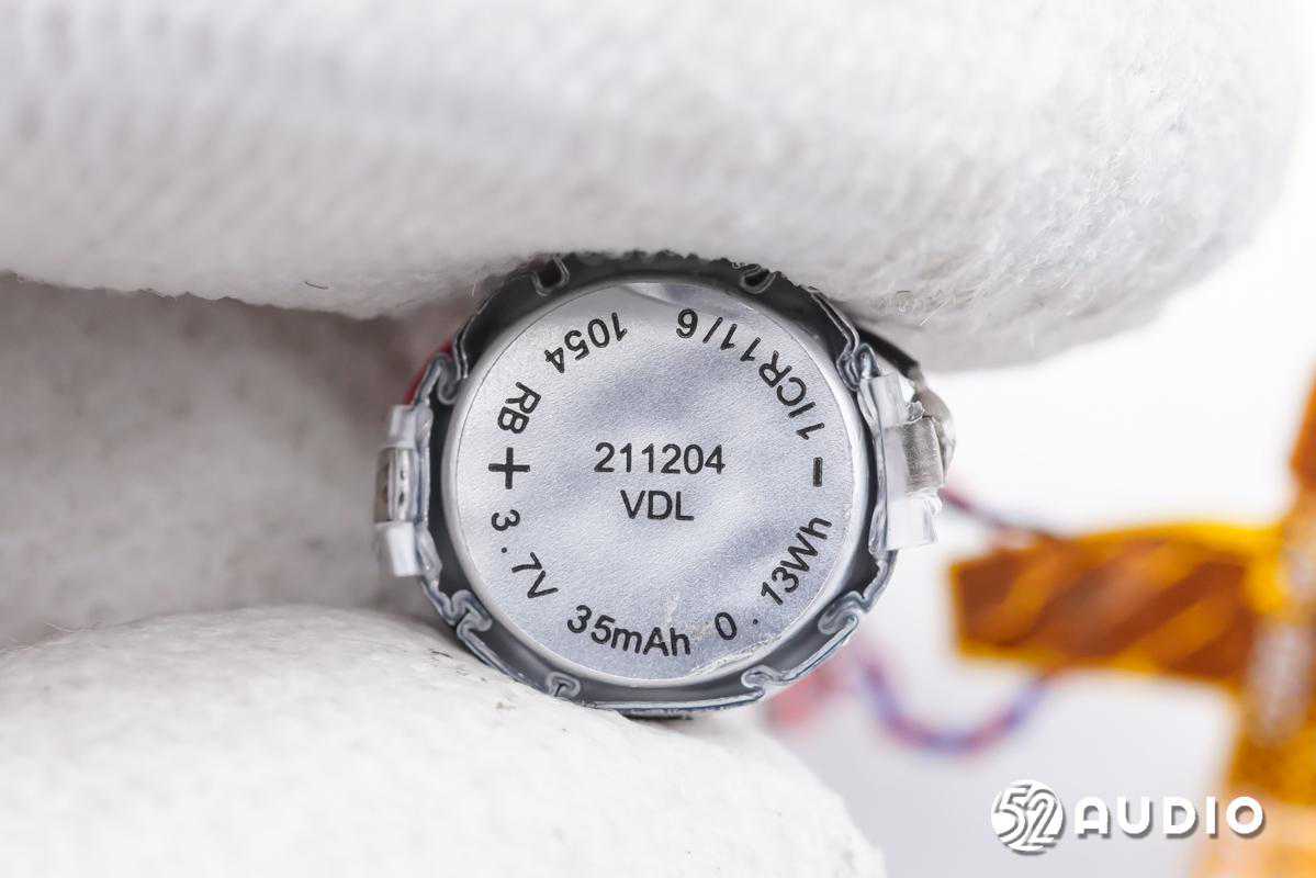耳机内置软包扣试电池,型号:211204,电压:3.7V,容量:35mAh/0.13Wh,同样来自VDL紫建电子。