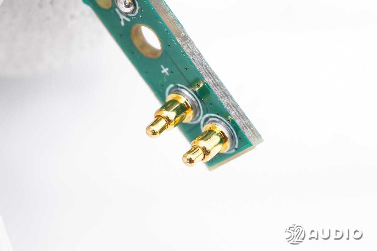 为耳机充电的两颗金属铜柱连接器。