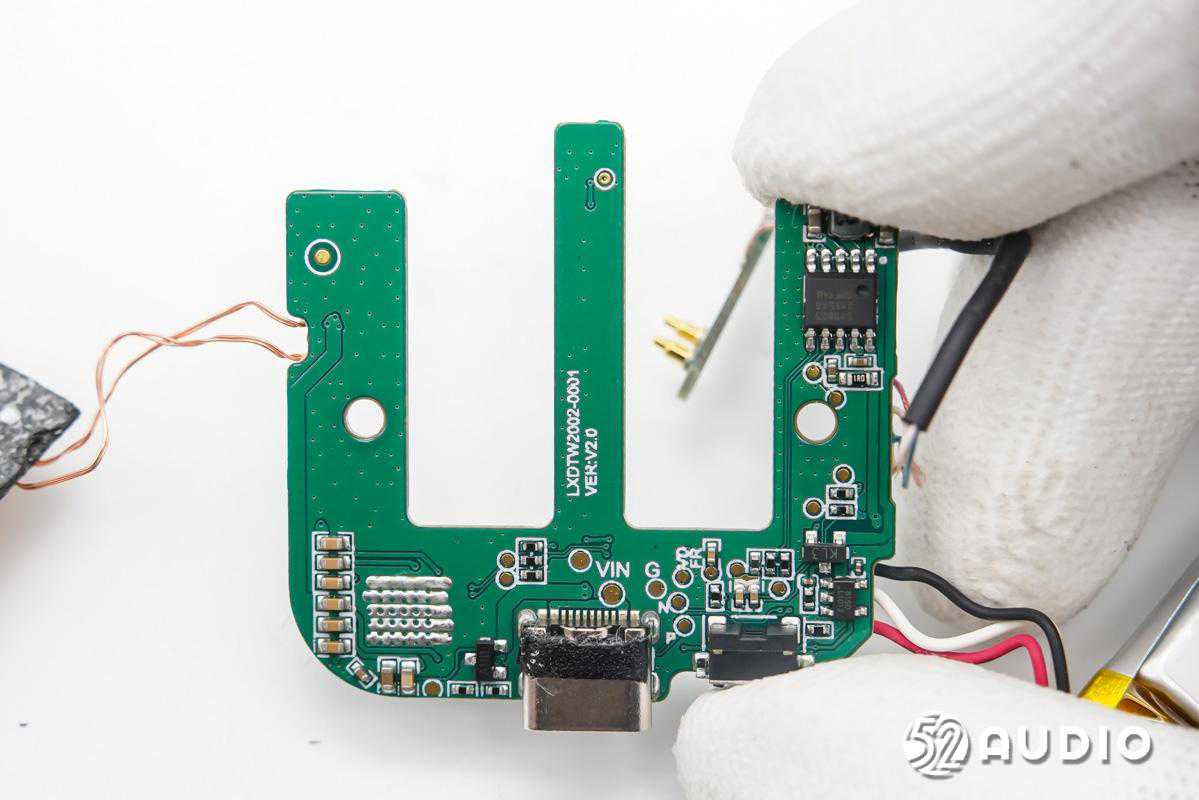 为耳机充电的小板电路一览,连接主板的导线焊接在小板上。