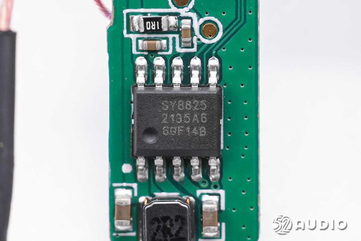 内部配置方面,充电盒支持有线和无线两种方式输入电源,内置电池容量410mAh,来自紫建电子;主板上,采用了思远半导体SY8825蓝牙耳机充电仓SoC,内部集成充电模块和放电模块,充电电流外部可以调节,放电模块集成两路输出限流开关,支持输出电流检测;矽海ASM32F020单片机,用于充电盒整机控制。