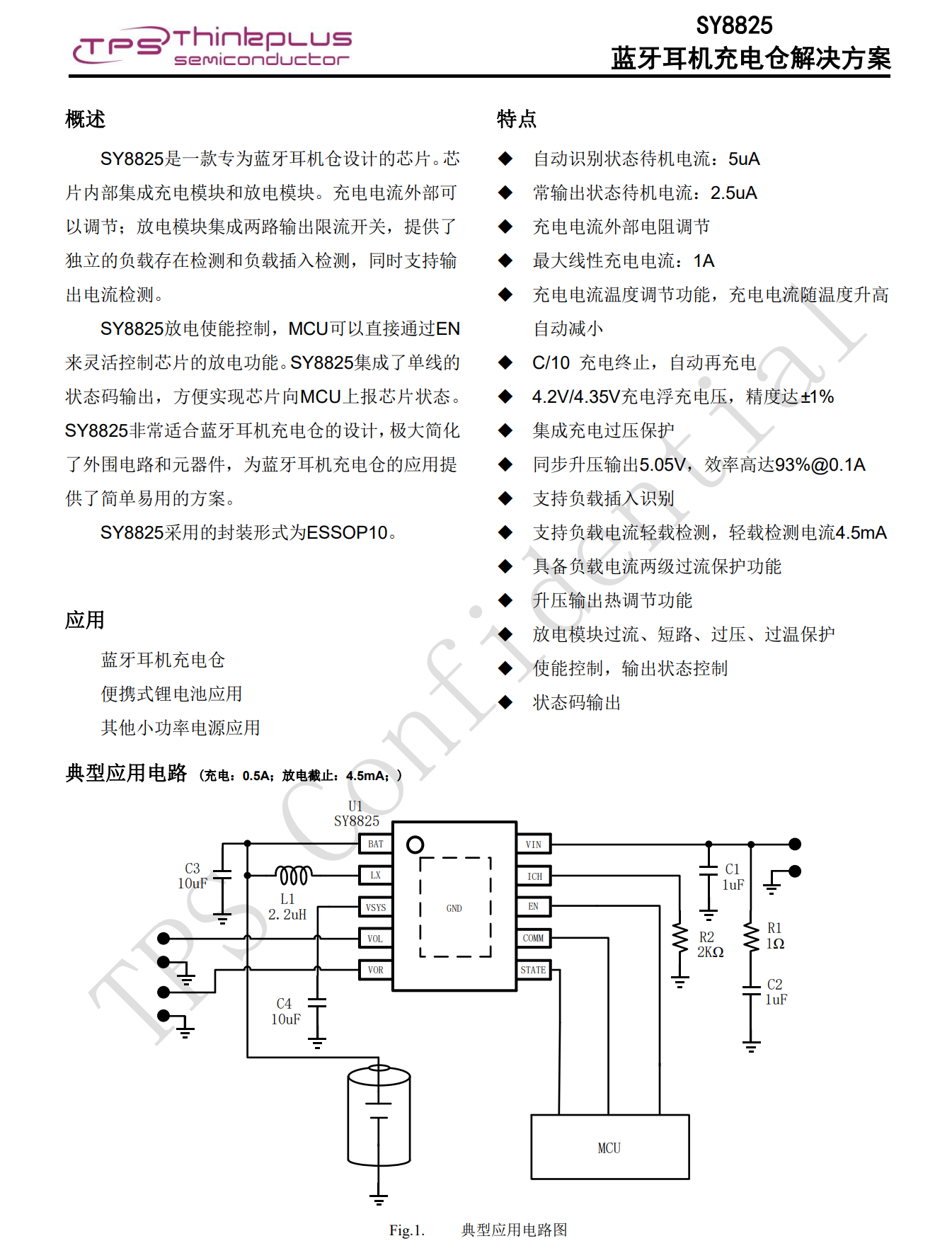 思远半导体SY8825蓝牙耳机充电仓SoC,内部集成充电模块和放电模块。充电电流外部可以调节;放电模块集成两路输出限流开关,提供了独立的负载存在检测和负载插入检测,同时支持输出电流检测。SY8825采用的封装形式为ESSOP10。
