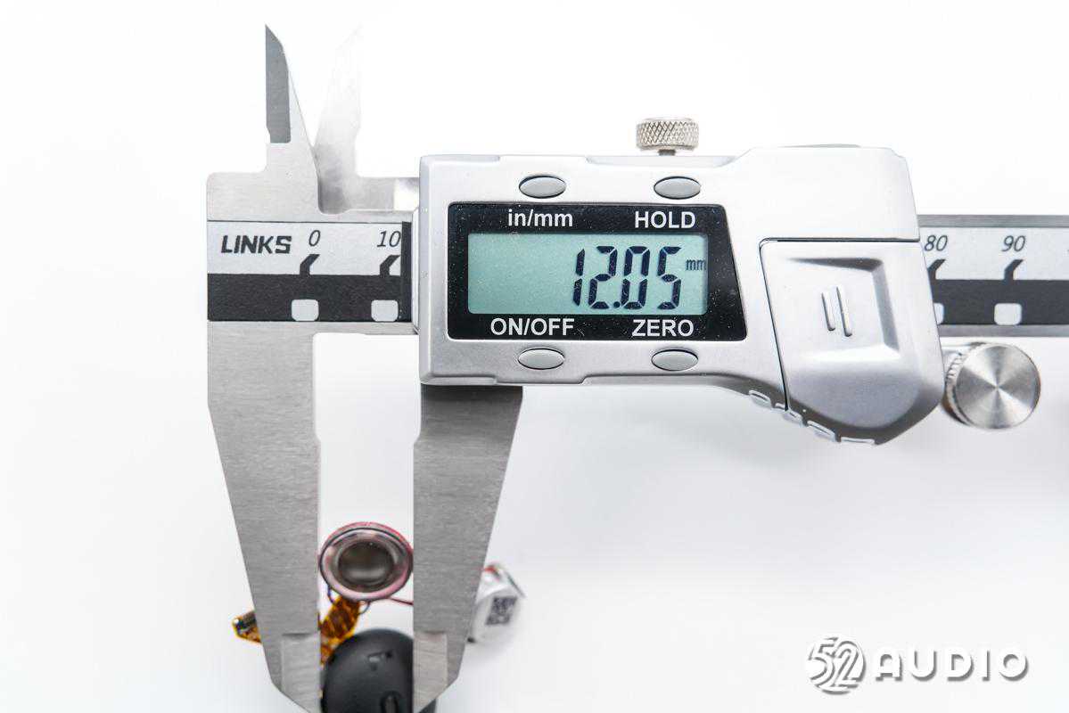 经我爱音频网实测,扬声器尺寸约为12mm,与官方宣传一致。