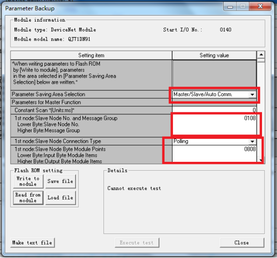 3、设置StartI/ONo(与PLC配置界面相同),moduletype设置为DeviceNetModule,ModulemodelName设置为QJ71DN91