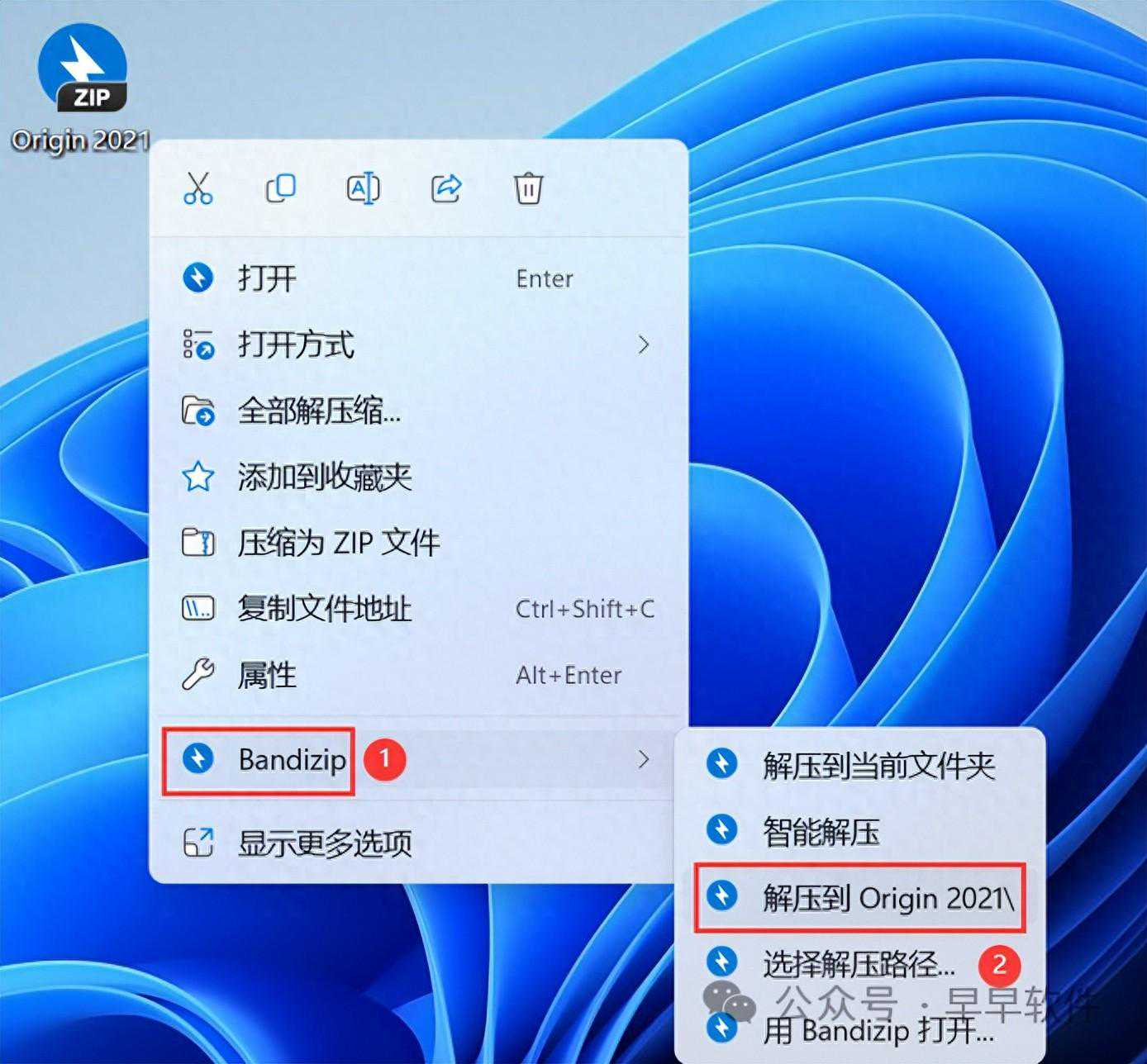 1、下载Origin2021软件安装包到电脑上,右键选择【解压到Origin2021\】