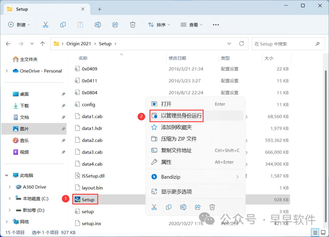 4、找到【Setup】应用程序,右键选择【以管理员身份运行】它