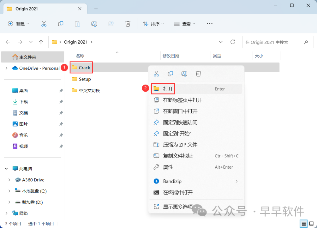 18、回到Origin2021文件夹,找到【Crack】文件夹,右键【打开】它