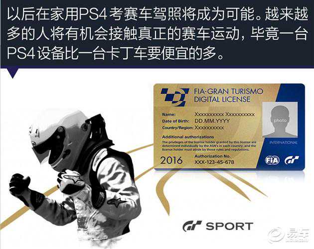 完成了所有驾照项目,并且在这些科目中取得一定成绩后,可以在所在区域的国家运动部门(ASN“NationalSportsAuthority”)许可下取得FIA-GT数字驾照,这个数字驾照可以通过当地ASN换取与现实中赛车驾照有同等价值的实体驾照,而玩家的地区是根据登录PS4的PSN账号来识别。当然具体的条件、费用和手续办理会在后续进行公布,但可以肯定是中国内地、香港以及台湾地区都在参与范围内。