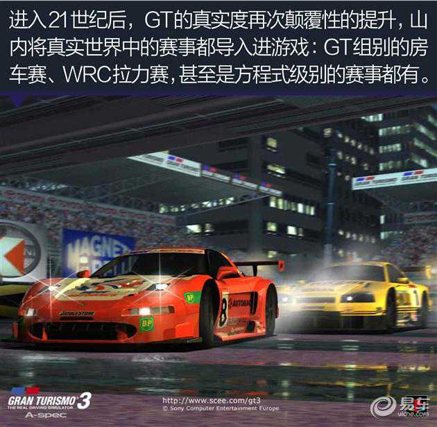 国内接触最多的GT系列游戏随着国内生活水平的提升,PS3大量的走进我们的生活,GT5、GT6于是成为国内玩家接触最多的系列。至此,GT系列还是在山内的倡导下,坚持写实的风格,而《极品飞车》系列则在写实与娱乐中摇摆不定,经历了几次销量惨淡的结果后,不得不在2015年重启新的系列,并在纯娱乐的道路上越走越远。