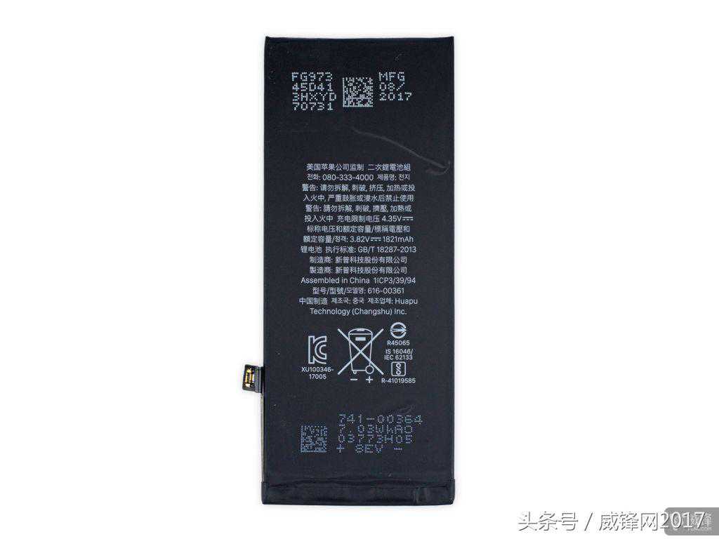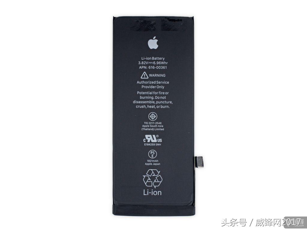 iPhone8电池额定3.82V,容量1821mAh,功率6.96Wh
