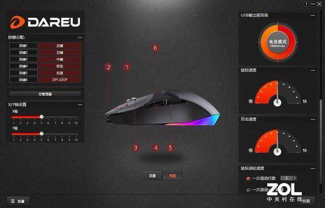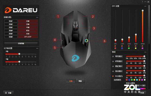 我们可以在驱动中调节鼠标的灯光模式、DPI预设、按键键值、按键宏、鼠标的回报率、双击速度、滚轮速度等等功能。