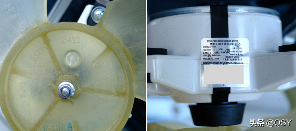 米家自然风2匹,风叶直径422mm,外风扇使用威灵37w直流电机