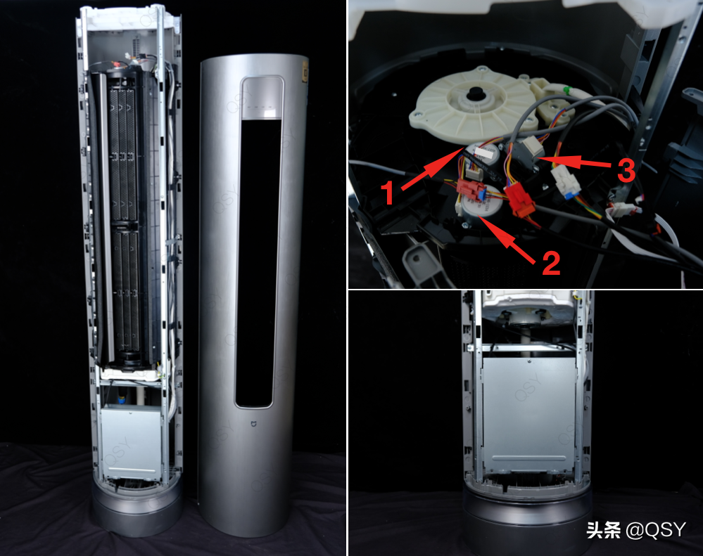 米家自然风2匹外机,正面和背面拆解图
