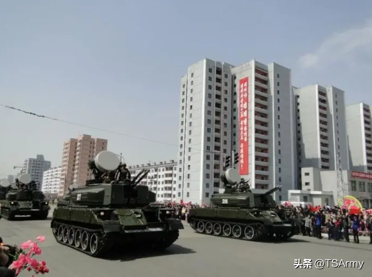 ZSU-23-4实际上是由前苏联当年援助给朝鲜的“石勒喀河”23毫米自行防空炮,但有一部分的底盘被朝鲜重新改进,安装了一个自制炮塔,内置双联30毫米高射炮。