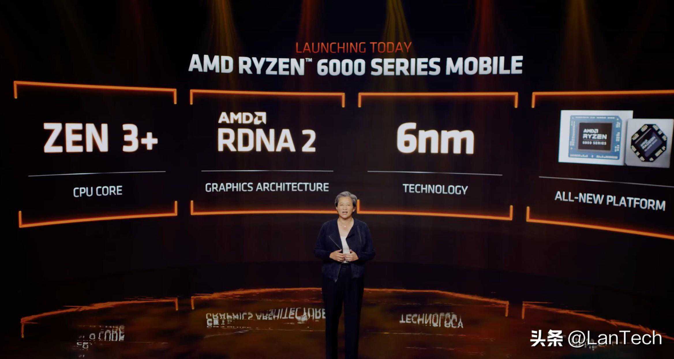 今年的CES上,苏妈发布了全新的Ryzen6000系列移动平台处理器,采用6nm工艺,基于Zen3+架构: