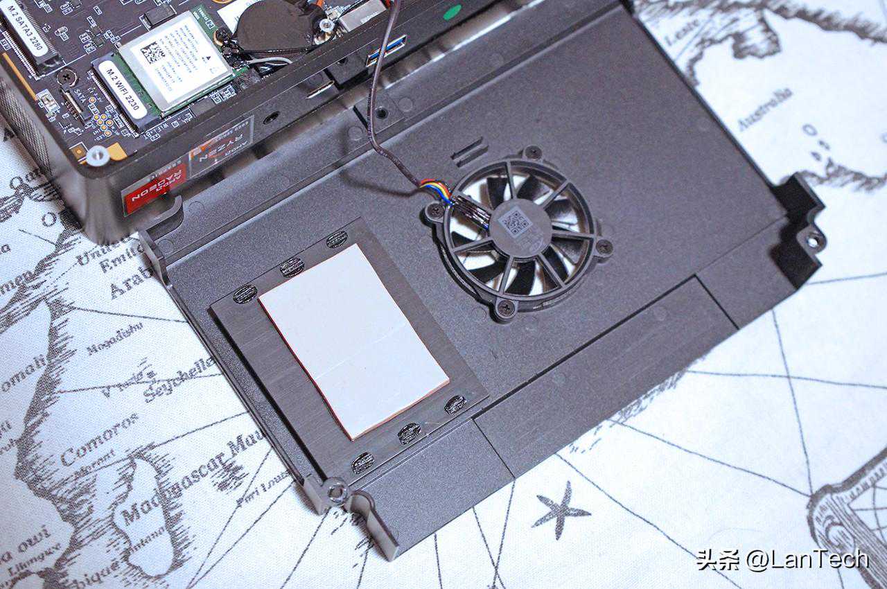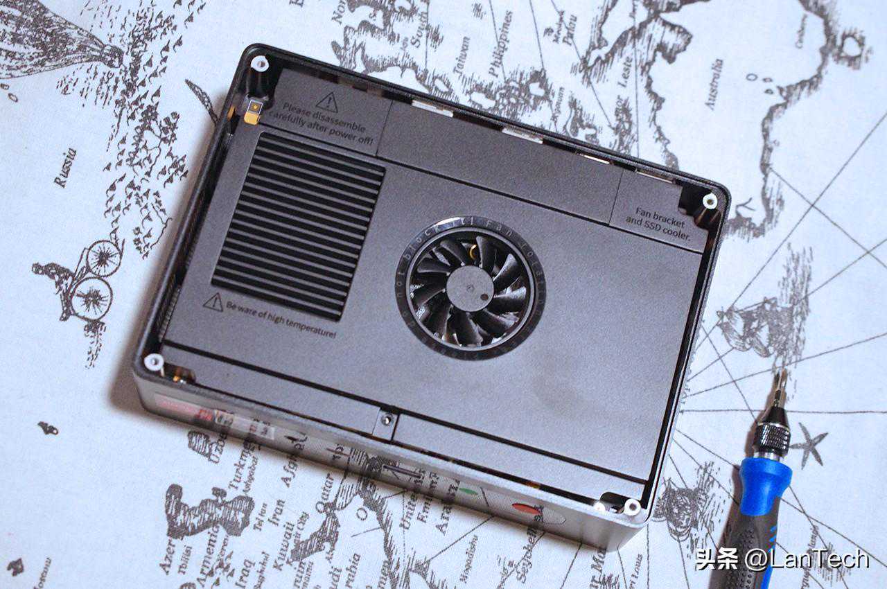使用标准的PH1螺丝刀拆开底盖后,可以看到零刻GTR6迷你电脑内部大面积的散热片和风扇: